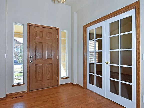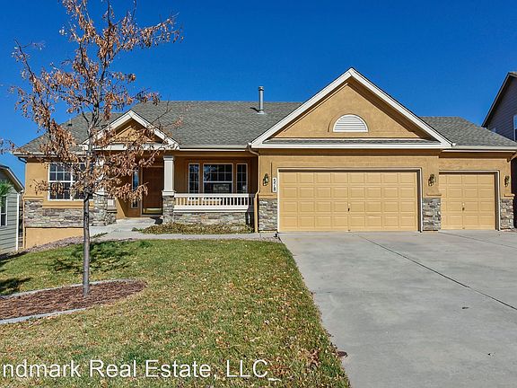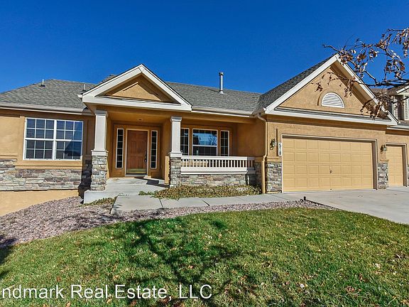 578 Larimer Creek Drive - Fabulous ranch-styled home, open and airy, formal dining room, kitchen with eat-in area, office on main level with French doors, 5-piece master bedroom/bathroom suite with wood/vinyl flooring on main level and three bedrooms on basement level with walkout, property sits on incline so basement is also at ground level adding lots of light to the basement, huge family/recreation room, central vac. Fully landscaped, automatic sprinkler system, backs to open space, mountain views, close to shopping, schools and Air Force Academy! No Cats Allowed (RLNE6558492)