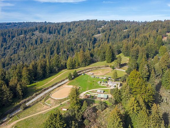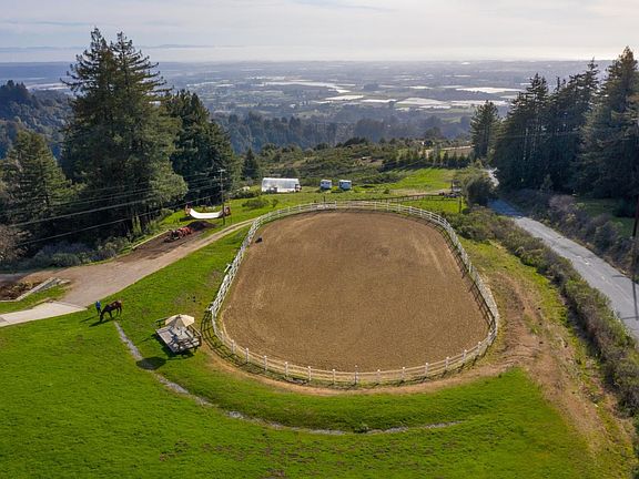 Equestrian paradise on 19+ acres of land with access to miles and miles of riding trails in Mount Madonna County Park! Enjoy breathtaking ocean views over Pajaro Valley to the Monterey Bay and beyond. Properties like this rarely come on the market. Charming 4 bedroom, 4 bath farmhouse is set up for multi-generational living. Upstairs features 2 spacious bedrooms and 2 full bathrooms. Gorgeous oak hardwood floors, open beam ceilings, plantation shutters and several custom built-ins really add character to the home. Downstairs features 2 additional bedrooms, 2 full bathrooms. The living room has stone floors and wood burning stove with brick surround. Fully permitted 6 stall custom barn with 14' x 14' stalls, wash rack and immaculate ocean view riding arena. 3 fenced pastures, 20'x40' hoop house for hay storage. World class tack room has potential to be used as a barn manager/ horse trainer's office, art studio or caretaker's cottage. 2 outbuildings for storage. Very unique opportunity!