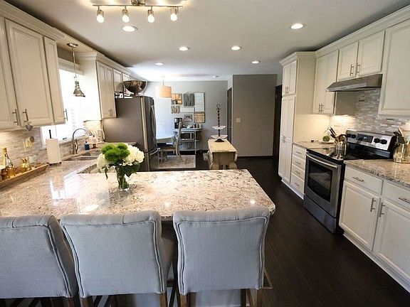 Updates throughout this spacious Eastside Twin Home. Over 2600 finished square feet in the 3 BR 2 BA 2 Car Garage home with nice wood laminate floors on the main level. Formal Living Room and Dining Room plus a Main Floor Family Room sporting vaulted ceiling. Check out this kitchen--Newer white cabinetry, newer granite countertops & tile backsplash, newer sink and faucet. There is also an eating bar and breakfast nook. All stainless appliances stay. Retreat to the Master Suite with lots of natural light. Master Bath features beautiful quartz countertop, white vanity, tiled shower and tile flooring. Two more bedrooms and updated hall bath round out the main level. The crafter in the family will love the huge family/game room boasting luxury vinyl tile floors. Enjoy the outdoor living space in the fenced backyard. Newer water heater, newer guttering, newer sump pump. This twin home would be perfect for those ready to downsize or a first-time buyer. Don't miss out on this one!! -- Call to schedule your private showing today!