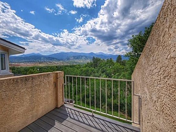 Have you ever wanted to come home every day to a mountain vacation townhome? And, what if this townhome was in a very centralized area of Colorado Springs, close to shopping, the Interstates, downtown and Old Colorado City? What if you literally had a million dollar view of the front range and majestic Pikes Peak from one of two Trex covered decks? Then this lovely townhome is what you are looking for. The well-maintained buildings boast plenty of parking, well maintained lawns and landscaping and snow removal. This townhome is a standout among its peers. The incredible interior boasts bamboo laminate floors, a custom cherry wood kitchen with granite countertops, a brand new furnace and ceiling fans. The contemporary design has high ceilings, a built-in cherry storage bench and shelving in the bedroom, which also has a walk in closet. Atrium style entrance is shared with an adjoining unit, making it a very secure & safe place.