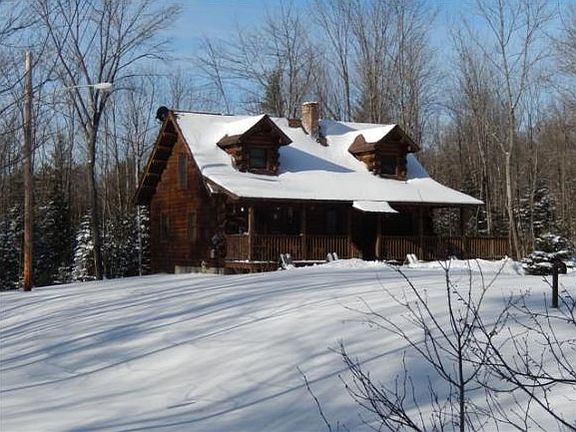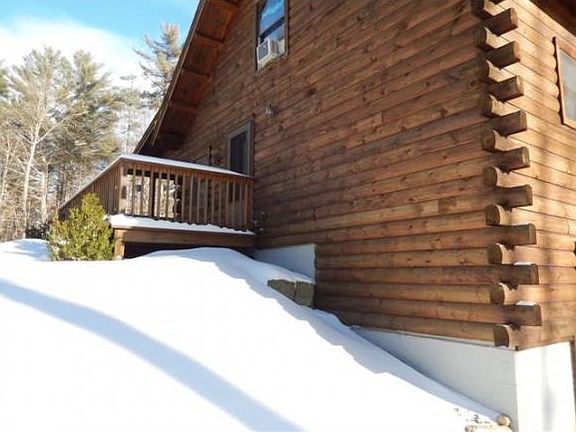 If you are an outdoor person you will love this location, located across the street from hundreds of acres conservation land, 1000' to Grafton Pond with public access, Collette Trail is nearby for hiking. The 2006 3 bedroom, 1.5 bath log home has a warm feel with tongue and groove wood beamed ceiling, hardwood floors, and log walls. Economical heating with pellets and less than 400 gallons of fuel for the FHW heating system, double flue chimney. Full walk out basement for future expansion with 4 bedroom state approved septic system. Covered front porch and deck for your relaxation. Decorative Harmon pellet stove and kitchen appliances included. 10.4 acres with woodlands, pear, and apple trees.