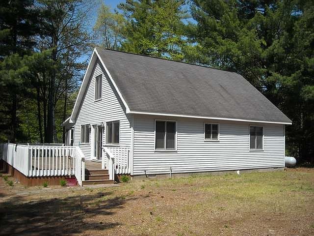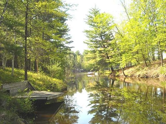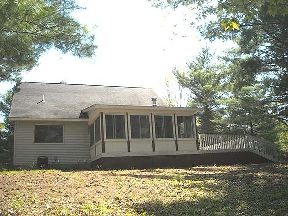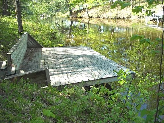 Waterfront Chalet, 3 possible 4 bedroom year around home Featuring open living concept, full waterfront sun porch, Hunter ceiling fans through out large deck for entertaining, large 39 x 13 1/2 Open Deck Deep wooded lot with over 191 feet of water frontage, a newer 24X40 pole barn with concrete floor & electric and a 10X12 shed for all the yard tools , toys ect mostly furnished as shown. Easily add a master bath with just 2 additionall walls.l