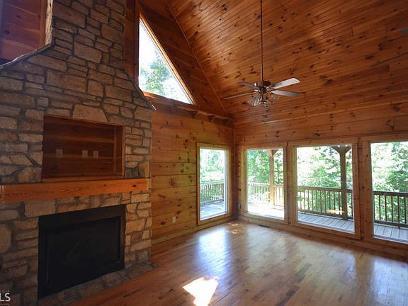 This lodge-style home has everything you need to relax after a fun day on Lake Hartwell. The main level has a great room with wood flooring and a floor to ceiling stone fireplace. The great room is adjacent to the kitchen and dining area and opens onto a covered porch overlooking the lake. There are three bedrooms and two baths on the main level, including the master suite. Upstairs you will find another full suite with private bath and a flex area for office, exercise or additional sleeping. There is an easy walk to the two-slip dock included in the sale.
