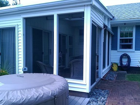 New Price. Imagine...Your own private indoor heated pool with this Much sought after Ranch Style design home situated on over half acre with loads of privacy. Pool area is surrounded by a large enclosure that opens to the outdoors with deck and hot tub, tennis court, fireplace, and half bath. Custom gourmet kitchen with granite counters, professional stainless steel Kitchen Aid appliances. Fireplace living room with hardwood floors. Dining area with brick hearth and natural gas grill. Large bath with glass block shower. 3 Fireplaces. Central A.C. Totally renovated including roof, siding, heating and more. Located within minutes to the highway access and shopping. Wonderful house for entertaining. Septic system installed for 3 bedrooms. Call now!