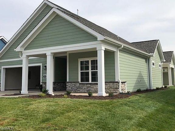 Portico floor plan w gas fireplace, upgraded cabinetry, covered front porch, covered porch off owner's bedroom. Home has GE Profile dishwasher, SS appliances, and granite kitchen countertops. Owner's bath has zero-entry, walk-in, tiled shower. Private courtyard off the dining and living rooms.