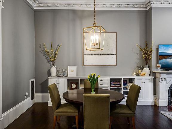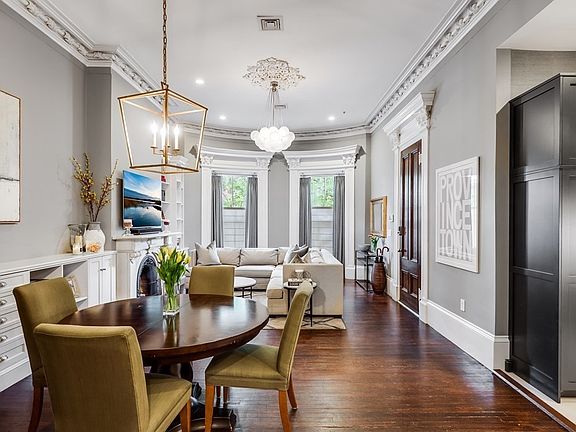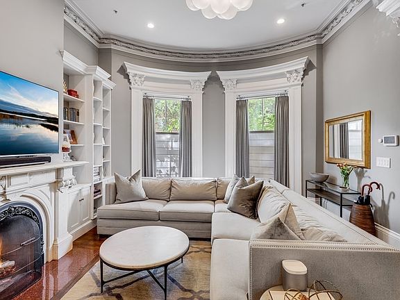 The Perfect Parlor floor thru home has 14 foot ceilings with incredible detail and moldings. Open concept living, dinning has wood burning fireplace, custom built-in shelving and bay window. Separate dinning area has built in shelving or service area for entertaining. Immaculate cooks kitchen has stainless appliances, custom cabinetry, and Quartz countertops. Master bedroom has walk in closet ,en suite master bath with double sinks and direct access to a beautiful private terrace. Second bedroom can be used both as a bedroom and has more than enough room for a at home work space or home office. The classic detail combined with modern amenities make this the perfect city home. All owner 4 unit building, low condo fees and a walk to everything location make this home a must see ! Rental prking available nearby .