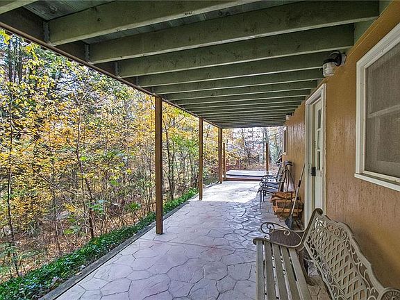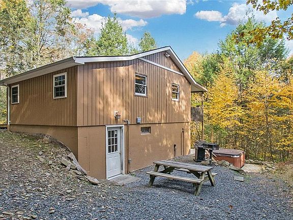 Welcome to the Poconos! Pride of ownership is evident. This property features 3 BRs and 2 full baths. The main living level has an open concept floor plan perfect for entertaining. Living/Dining features a vaulted ceiling w/ exposed beam and Wood Burning Fireplace set in stone. The kitchen is updated w/ newer appliances, tile backplash, and laminate flooring. The lower level has a true cabin feel w/ real tree posts, wood and stone details. Lower level bath features a deep jetted tub set in rustic stone. The exterior boasts a huge covered deck also perfect for those large gatherings, fire pit, picnic area, covered patio, and hot tub. Newer central air unit installed to make this the perfect mountain getaway! Make this your full time residence or next great investment opportunity!