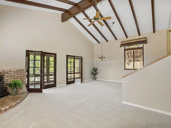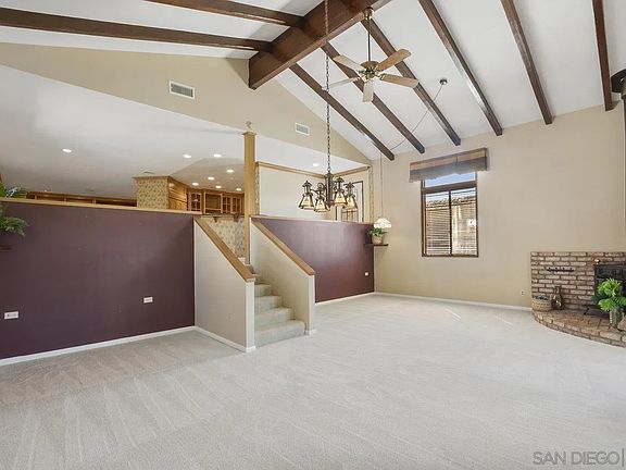 Very Special Home on .45 acres in North La Mesa! It's a beautiful ranch-style home with loads of emotional appeal. Has a gourmet kitchen with a subzero paneled refrigerator, Dacor six-burner stovetop, under cabinet lighting, double s/s sink, granite counters, and ample indirect lighting. The family room is a show-stopper with vaulted beamed ceilings, a fireplace, French doors leading to an enclosed patio room, and wood-framed windows with transoms. The deck and yard space leave much to the imagination as there is room for a pool, gardens, and even a pickleball. The carpet is new, the living room has a wall full of custom built-ins, and a stunning fireplace. Notice the convenient laundry room with cabinets and appliances. The gorgeous exterior has newer Rhino Shield paint, and the turfed front yard and paver area make for welcoming entry. This will be a wonderful, relaxing space to entertain and certainly a serene place to call home!