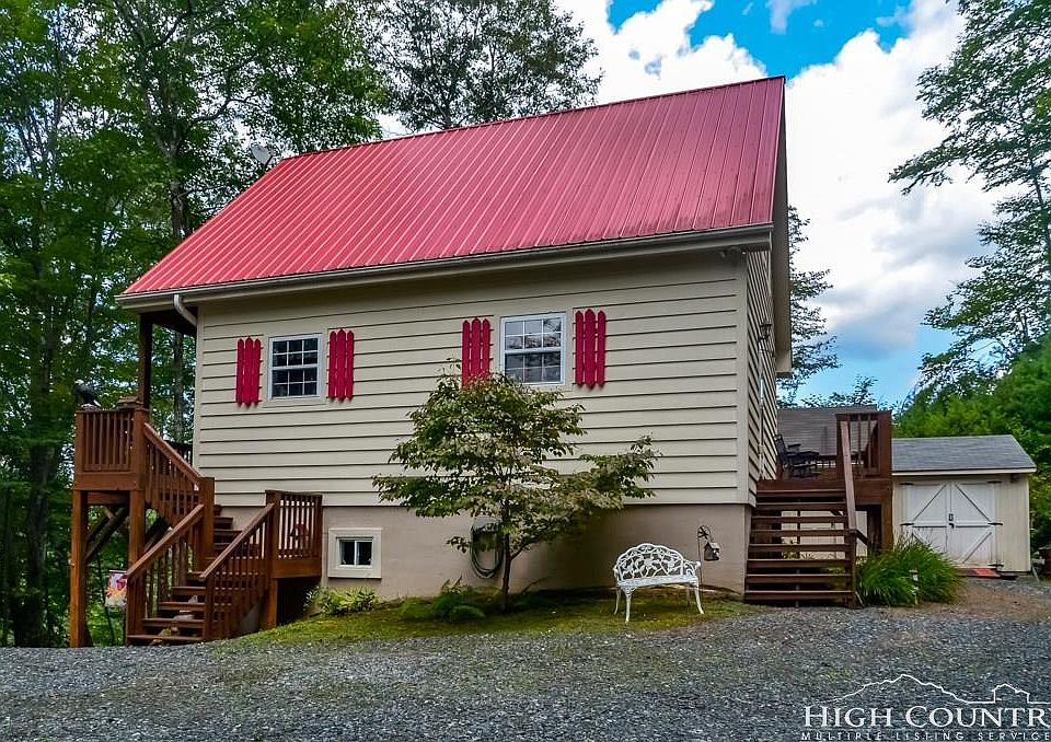 This super cute cottage is the ideal place to escape and relax in the mountains. Perched upon the mountain, you are surrounded by nature and the sounds of song birds. 0.5 miles away from the South Fork of the New River, so make sure you bring your tubes, canoes, or kayaks. There is a 22x12' storage building/workshop to store your kayaks, mountain bikes, or ATVs. A nice level yard at the bottom of the property is a great place to camp next to the small stream. This easy living house has an open kitchen, breakfast bar, dining area, and large living area with gas fireplace and access to two decks, all on the main level. Two bedrooms on the upper level and the master has a private balcony. In the fully finished basement, you will find extra sleeping and nice family room. This room could make an excellent game room as well. Centrally located to Boone, West Jefferson, and The Blue Ridge Parkway. If you are looking for a nice and easy place to retreat to in the mountains, look no further, this one is for you!