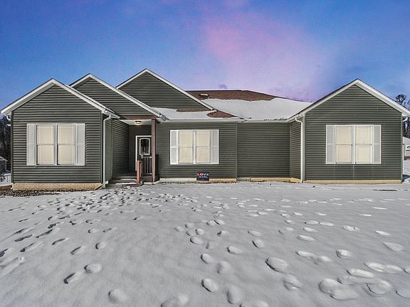 This charming property is situated on 3.5 acres of gently rolling land, complete with a serene creek in the back and is partially fenced in. The great room is a standout feature, with beautiful hardwood floors and large windows that provide peaceful views of the lush backyard. The open-concept kitchen has a large island that's perfect for gathering. The primary bedroom is spacious and inviting with a walk-in closet and large bathroom. BR 2 has it's own bathroom as well. BR4 could be used as office or flex space. Newer composite decking on the front porch and the gorgeous back deck. There is a detached 2 car garage which features the start of additional living or office space. Bring your finishing touches to this to add even more value to this already great property. Just 8 minutes to I71