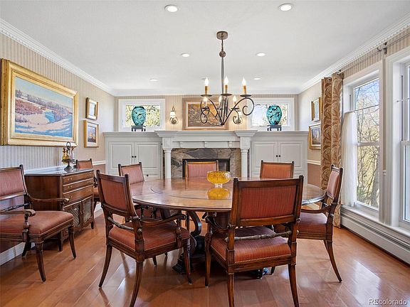 Charming traditional Tudor situated on a private corner lot in the heart of Greenwood Village. Located in the coveted Cherry Creek School district. Gourmet kitchen hosts professional gas cooktop, double ovens, warming drawer, two dishwashers and a large center island. The eat-in kitchen flows into a spacious family room featuring a gas fireplace, built-ins, two seating areas and a bar. Adjacent to the kitchen is a private office, ideal for those working from home. The inviting formal dining room with a gas fireplace is perfect for entertaining. French doors lead you to the gorgeous fully fenced back yard and outdoor living area complete with a gas fireplace. The luxurious primary suite includes a large sitting area with a gas fireplace, a beautifully remodeled bathroom and a huge custom closet. The garden level basement can be used as an extra office, family room or ample storage. The conforming basement bedroom has three large closets and an ensuite bathroom perfect for guests or a nanny’s quarters.