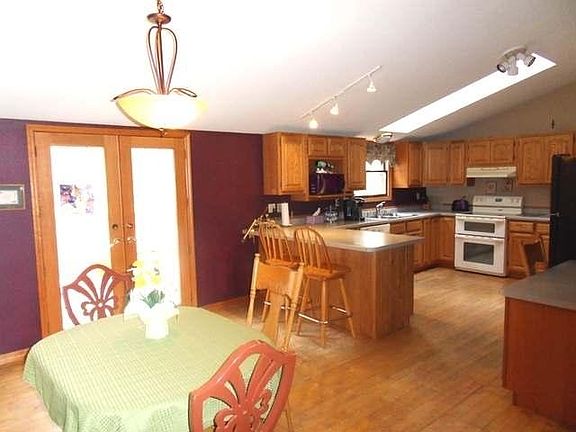 Spacious country home close to town on a 3.6 acre lot. This home is stick built and offers over 1900 square feet of living space on main floor. Some features include 4 large bedrooms, main floor laundry with half bath, bright kitchen/dining area with hardwood floors and patio doors leading out to deck, large living area with bay window, comfy family room, 2 full baths, covered porch area, and a 26 by 30 garage. A must see home!