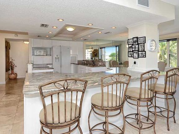 SPACIOUS, with its open living area, LIGHT, with its bank of windows opening to the Gulf of Mexico and landscaped courtyard, LIVABLE , with updated interior including customs kitchen cabinets, granite counter tops in kitchen and baths, and views from every living space! Have you been looking for an over-sized unit located on the premier property of Gulf & Bay Club? Located mid-point on Siesta Key Beach you will enjoy expansive views of the Gulf of Mexico, Siesta Key's famous beach, and private tropical grounds with lake and pools. Whether daylight, twilight, or after dark, there are delightful vistas from the eight large windows. Two of the bedrooms also include water views, private bathrooms and generous walk-in closets. You will be pleased with the extra powder room, large utility room, now fitted with workspace, Murphy bed, and ample storage. Of course, you will also enjoy the resort-style amenities including 3 heated pools, 8 tennis courts, a well-equipped fitness center with spa, and BBQ areas with tiki coverage and gas grills located throughout the grounds. Centrally located on the Key, you are within easy distance to Siesta Key Village with its restaurants and boutiques, and with convenient access over either the North or South bridge. So much more is provided...call for a showing and see for yourself!