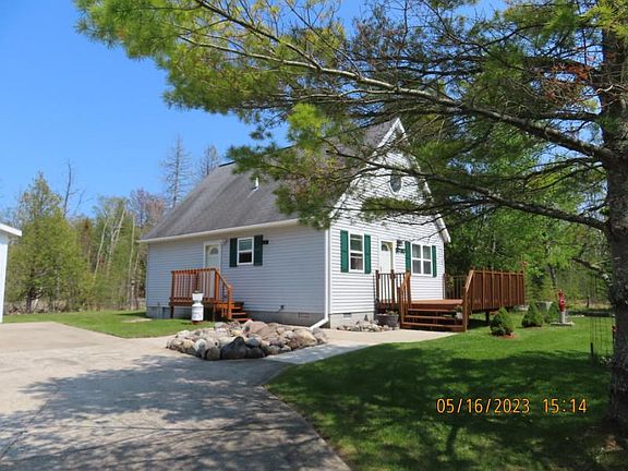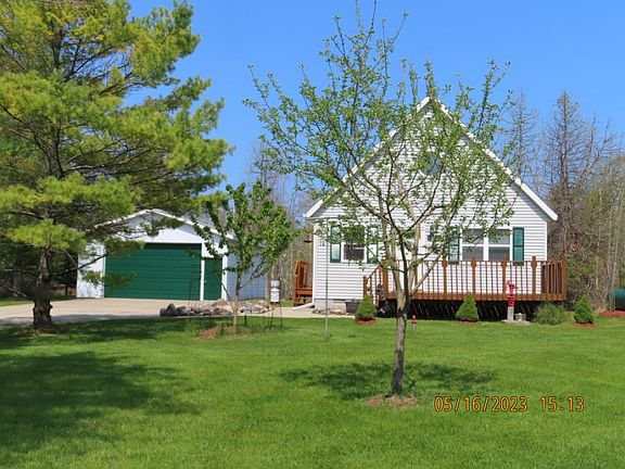 FANTASTIC BUY!! This property is move-in ready and ideal as a year-round home or the perfect cottage. The deeded lake access to Lake Huron with a sandy beach is within walking distance. The 3 bedroom, 1 bath chalet offers a cozy interior with great living space. Two bedrooms with closets are on the main floor. The third bedroom/loft is on the second level. The first floor open floor plan includes the galley kitchen with ample cabinetry, dining area and living room with beamed ceiling adding to the up north flavor. The windows are vinyl clad and open in for easy maintenance. The interior is drywall and the flooring is hardwood, ceramic tile and carpeting. Mechanicals are located in the dry 5 block crawl space. The 24x32 pole barn with concrete floor and electricity has a 16' x 9' garage door. Home has an artesian well. This is an ideal location because you will never have a structure built on the north or south sides of this home. One side is a private park and the other side is the private roadway that takes you to the "deeded lake access lot to Lake Huron". Also, within 1/2 mile is the launch site to Lake Huron and a beautiful park. Just doesn't get any better than this.