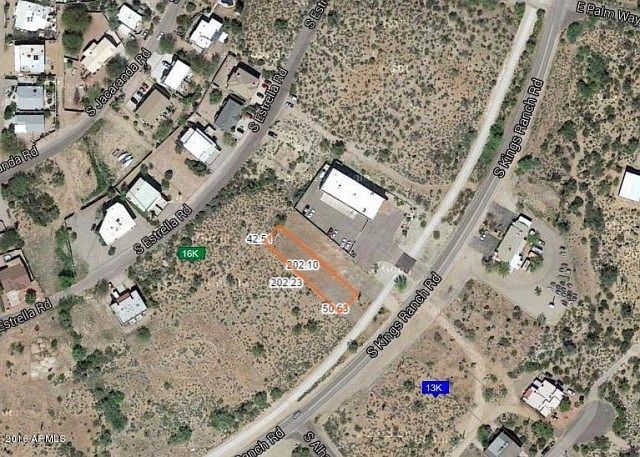 Incredible opportunity to own 100' of frontage on Kings Ranch Rd., right next to Pinal County sheriff's station. Zoned CB-2 with water and electric on property. This location is a prime elevated lot with amazing mountain views! Apx 21,780 gross SF. Lot purchase includes parcel 104-13-126, and parcel 104-13-127. In addition lot has block wall on north side of property. Seller may carry. Please call for more information.