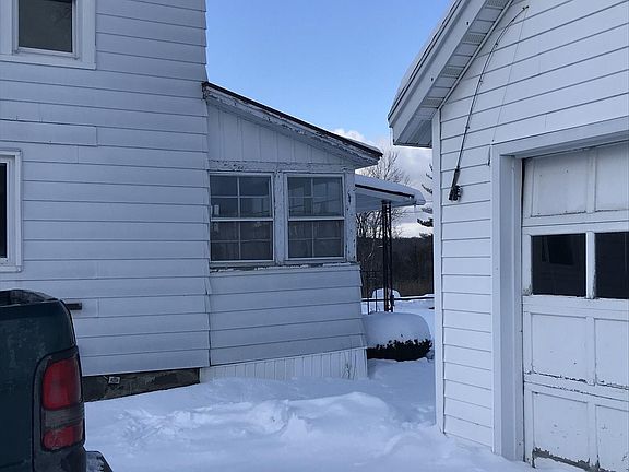 Well kept property. Nice fireplace in living room. Great front porch newly done over with pressure treated wood. Dinning with eat in kitchen. One stall garage and a back porch. A lot of wildlife in backyard and springs above, will never run out of water.