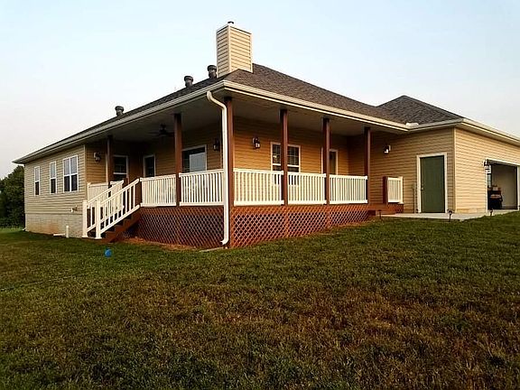 This turn-key gorgeous, 2020 built home and three house broiler farm (40x400) is nestled in the heart of the Ozarks on 63 +/- acres. Marvel at the view from your 42ft covered deck, as you enjoy your morning coffee overlooking the country scenery. Enjoy your main amenities on the first floor, including a large master suite with a 55x31 custom walk-in shower, custom designed kitchen with granite breakfast bar, a study/office, utility room, and second bedroom. This home also has a family room, wet bar, additional bedroom, and additional storage in the full basement. In addition, the property also has a 30x40 detached shop/garage.This working farm is beautifully maintained. Bio-secure, please do not enter without permission.