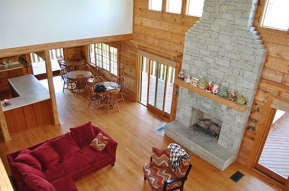 MAKE OFFER MOTIVATED SElLER! Very well maintained Log Home on 5.5 private acres that feels like Gatlinburg, without the traffic jams.Home sits on top of a ridge overlooking beautiful Indian Creek Valley.Large wrap around porch w/access from the LRM and Kitchen,exposed flat milled logs inside & out. MBR has floor to ceiling windows, exposed beam ceilings,gas FP & w/in closet. Upstairs loft w/chandelier,views,2 large bdrms & bath. Full finished bsmnt w/2 bdrms&wbfp. Minutes to Vevay and Casino