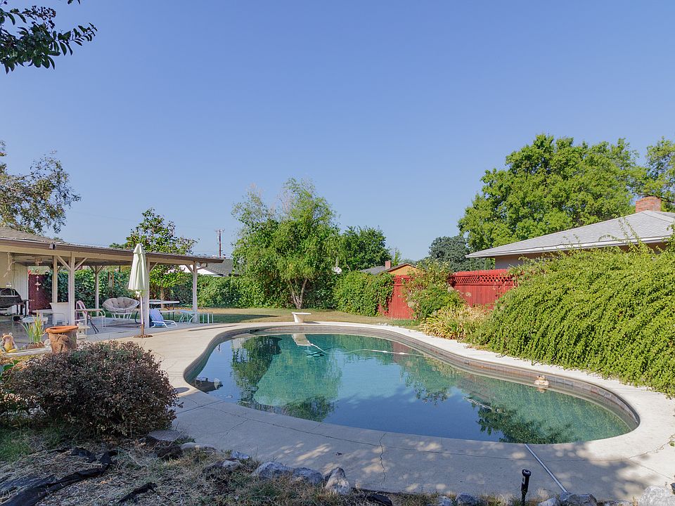 This home is perfect for summer entertaining! Huge covered patio and pool! Yard is beautifully landscaped, with a koi pond, garden, grapes, strawberries and shade trees. Gorgeous bamboo flooring in the kitchen and oversized windows in the living areas make this home feel much larger than it's square footage. Two storage sheds, one with power.Large storage and RV parking off of the side street entrance. You could not ask for more!