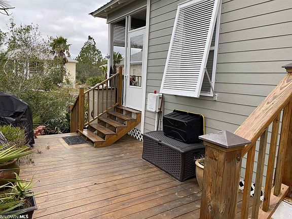 This lovely well-designed home sits across from the larger pool and the clubhouse in the coveted Rookery III community. This golf-cart neighborhood of multi-colored homes has two pools, a game room and beach access just down the road. The structure designs and multiple colors of this community give it a Caribbean atmosphere perfect for weekly vacation rentals, a second home near the Gulf, or a primary residence near two restaurants and a small grocery. The community offers a private and quiet neighborhood that welcomes nature and wildlife in the undeveloped areas. The house has an open concept kitchen, dining and living, with plenty of entertainment space. The home has engineered wood floors and decorative blinds throughout. Ceiling fans are installed in each bedroom and in the living room. Kitchen cabinets are light golden oak. All stainless steel appliances: LG's Side-by-side refrigerator with bottom freezer (6 years old), Amana Glass Top Stove (4 years old) and Kenmore Microwave. Double doors lead into a third room that can be used as another bedroom or be put to another use. The owner has updated the home with a deck that expands the wooden boardwalk and porch that exist on all the homes in the neighborhood, and added steps leading to the back area. The owner also added a storm door to the front entrance, hurricane shutters on all windows, a stainless steel upgraded dishwasher, a kitchen island on wheels, and a decorative chandelier above the dining area. Bedrooms are painted beach colors, with an added walk-in shower in the master bedroom bathroom and decorative blinds on the screened in porch. This is a primary home. It will be sold partially furnished. A list will be provided declaring items that Do Not Convey. All pertinent measurements should by verifyed by the buyers or the buyer's agent.