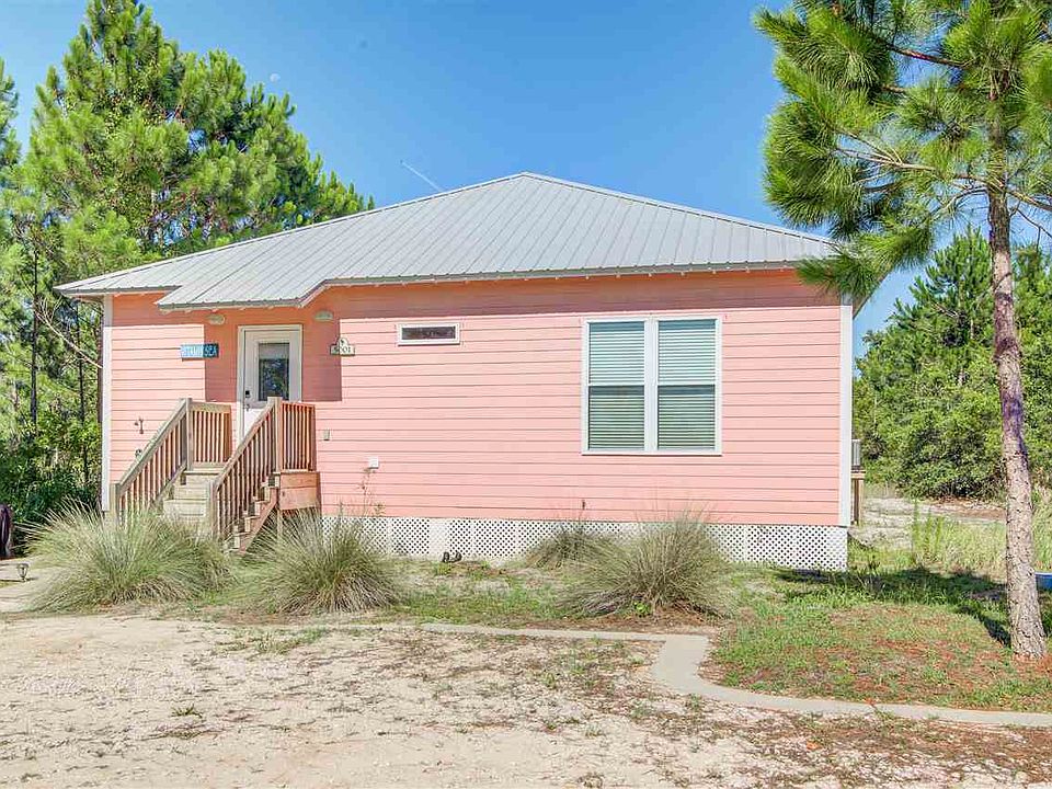 3br and 2 baths Beach cottage with no wasting space! Featuring 9 ft ceilings, crown moldings, bamboo floors, custom cabinets, granite countertops, stainless steel appliances, travertine shower and floors in bathrooms, built-in bunks in one of the bedrooms, full size washer and dryer, outdoor shower, etc. Located in a golf cart friendly community with beach access near by. Enjoy your morning coffee in your screened-in porch surrounded with nature and wildlife. Community Amenities including 2 outdoor pools, a kiddie pool, clubhouse and boat/trailer parking area. Selling fully furnished. Excellent rental history! Make sure you check out the 3D virtual tour!