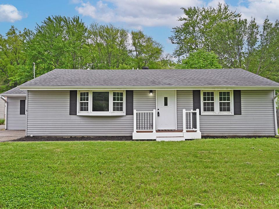 Welcome to your serene retreat in Miami Twp! This updated, move in ready home offers comfortable one floor living with a smart layout and stylish finishes. You'll find three spacious bedrooms, and oversized laundry room, and brand new LVP flooring, carpet, and paint throughout. The eat in kitchen is both functional and attractive, featuring granite countertops, SS appliances, and ample cabinetry. Step outside to 1.37 wooded acres that offers a perfect mix of privacy and open space. A portion of the backyard is cleared and fully fenced, ideal for outdoor activities. A large storage shed adds extra flexibility, and there's more than enough room to add a garage or outbuilding. The spacious shared driveway offers a turnaround in the rear, making it easy to come and go! Conveniently located in Milford School District, near I275, shopping and dining.