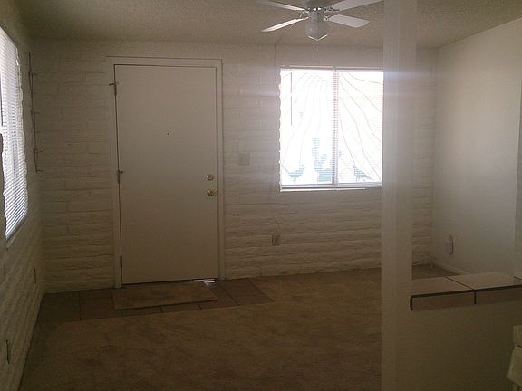 washer dryer hook ups in back patio, Air conditioning. Carpet in living room & beds. tile in kitchen & bath blinds on windows. Shower & bathtub, close to restaurants, public transportation & shopping. 22nd & Craycroft area. Large closets, plenty of parking on lot.