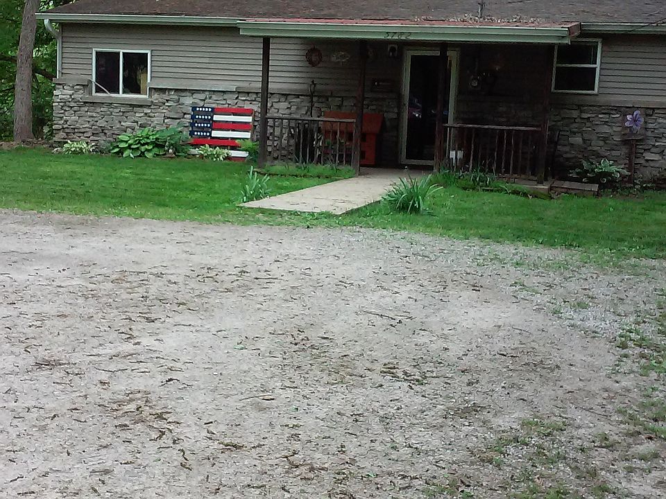 fantastic place for any outdoorsman. nestled in the woods on the beautiful wabash river. This cabin is only 30 years old. Nice vinyl siding with limestone halfway down. Nice covered front porch. Fire pit over looking the river. nice landscaping.