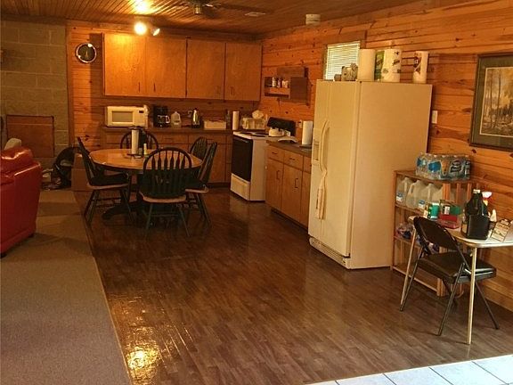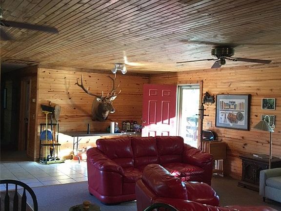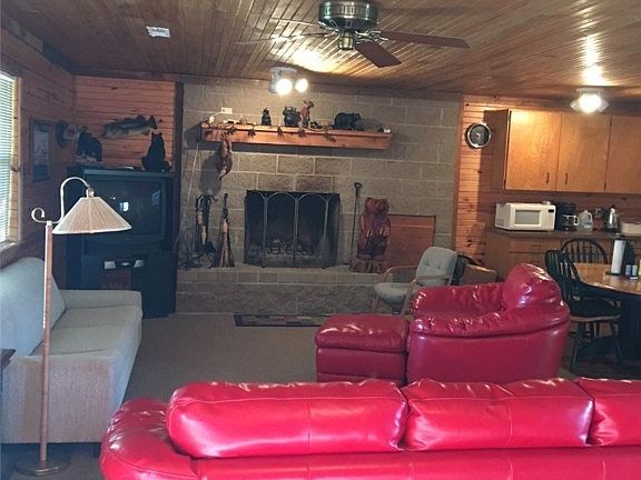 Very unique cabin with 160 acres. Cabin overlooks large pond with fishing right off the deck. Perfect hunting with tons of wildlife. Large deck in the front and covered deck in the back. Wood burning fireplace. Kitchen and living room have open concept.