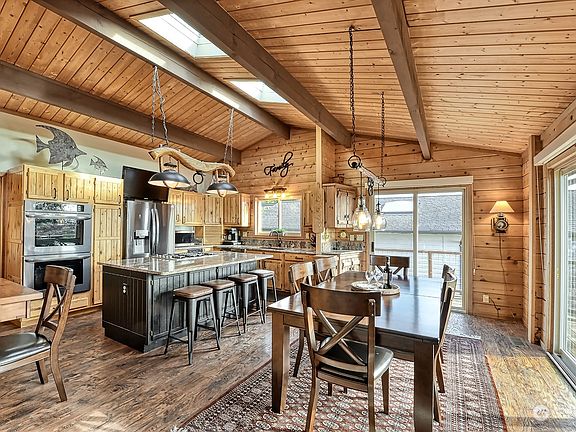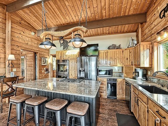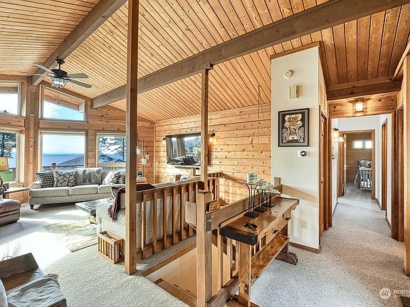 Location, charm, & sophistication, w/million dollar water views! This 3bd/4ba custom designed craftsman wood home is perfect for entertaining w/ window filled great room to capture the views! Enjoy the spacious kitchen w/new granite counters & all new appliances. The perfectly curated & serene backyard boasts a new deck, jacuzzi, & covered pergola for your own private oasis. The expansive wrap-around deck gives you breathtaking views of the bay & islands, and an active bald eagle habitat to enjoy throughout the day! This stunner also offers new wool carpeting, master bath & guest bath remodels, new sliding doors, & skylights! Downstairs wet bar, 2 wood fireplaces, boat/RV parking, along w/ all village amenities completes the package.
