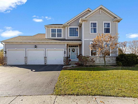 Welcome to this beautiful, custom 2 story home in the Village of River Run Subdivision. Located in a private cul-de-sac and built on an .87-acre lot with an attached 3 car garage and freestanding storage shed. 2,972 square feet of living space, which includes 5 bedrooms and 2.5 baths, 2 bonus rooms, and an attached 3 car garage. 10 ft ceilings and hardwoods throughout the main floor. Embrace the open-concept kitchen, living room, and 4-season room with tons of natural light. The second floor has 5 bedrooms, including a lavish master bedroom with a generous walk-in closet. The unfinished basement, adorned with 3 egress windows, holds potential for a work out area, home theatre or bar. The spacious backyard features apple trees and a garden area. With convenient access to I-90, Belvidere School District, and walking path access to Distillery Conservation District, create lasting memories in a place you can proudly call home!