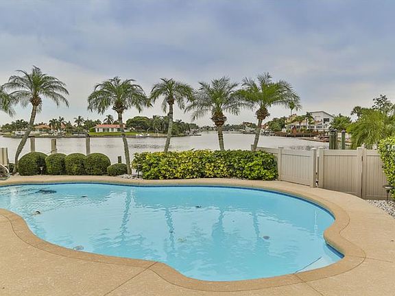 A once in a lifetime opportunity; the most coveted home in Gulf Harbors is available now. Stunning contemporary architecture, modern design, tastefully decorated & highly functional with panoramic views throughout. This octagonal shaped masterpiece is perfectly situated between the Gulf & a safety harbor; you are literally wrapped by glistening gulf waters. This beautifully updated home features 2 bedrooms on main level and a loft, making the ideal 3rd bedroom, office or guest room. The sumptuous mastersuite fills nearly one third the first floor, the master bath features 4 closets, dual sinks, granite counters, walk-in shower, marble floors & gorgeous gulf views. Relax by the double-sided fireplace in the living room & enjoy your elegant surroundings. The formal dining room is off the chef's dream kitchen; featuring a 5 burner gas range, double convection ovens, ice maker, granite counters, butcher block island & windows overlooking the waters. The screened patio offers a great entertaining area; the pool is open & the view, breathtaking. With over 86ft of seawall & a large stationary dock, there is ample room for any size boat. Oversized 2-car garage with workshop is cooled by a window a/c. Upgrades include thermopane windows, tankless water heater & more. The exterior is surrounded by pavers & lush foliage & the cul-de-sac location offers quiet surroundings. Skylights, soaring ceilings & an abundance of windows make this home a compete delight. Act fast to make this magical home your dream come true.