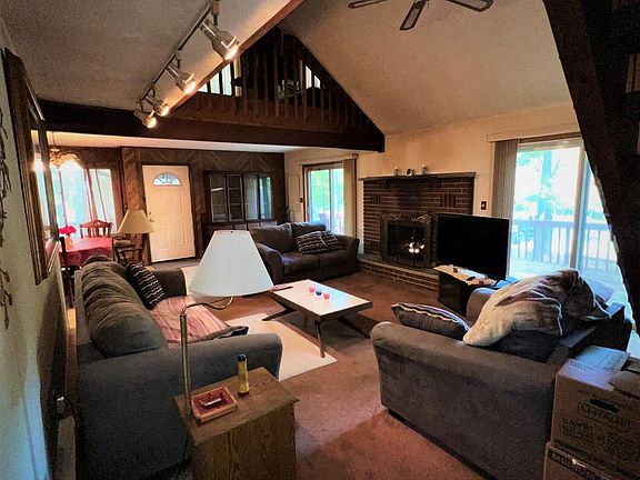 ***ACROSS FROM THE STREAM***LOWER TAXES*** PUBLIC WATER & SEWER *** This Charming Contemporary 3 Bedroom and 2 Bathroom Home has Many Nice Features Such As: Propane Fireplace, Great Loft Space that can Easily be converted to a Forth Bedroom if needed, A Bedroom on the First floor with access to the Bathroom, Large Enclosed Porch, Huge Deck so you can Enjoy Great Nature Views, Paved Circular Flat Driveway ! All Located in a Gold Star Four Season Community, Amenities Include Indoor/Outdoor Swimming, Indoor/Outdoor Tennis Cts, Fitness Center, 2 Skiing Trails (they Make their Own Snow), Beach Area, Fishing Dock, Stream Fishing, Boats, Racquetball CT, Indoor/Outdoor Basketball CTs, Baseball Field, Playgrounds, Ice Skating & Full Restaurant / Bar. Come Check it out, Schedule your Private Viewing