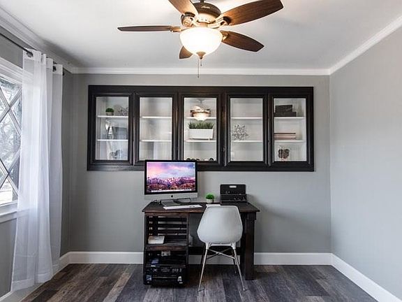 Must See!! .26 acre Lot, large back yard, cedar fence & gate. Newly painted exterior, 6 in. gutters around house, updated kitchen with quartz counter tops & tile mosaic back splash. Stainless steel appliances, basin, sink. Also, induction cook top & convection oven. Has large master bedroom with his & her walk in closets. Master bath with porcelain tile shower. Large 2nd Bedroom with walk in closets. Bedroom windows updated with acoustic grade acrylic inserts proven to improve energy efficiency and reduce outside noise by up to 70% (Per Mfg). Built in shelving in pantry enclosed with multi-lite french doors. Garage entrance in back for privacy. Too many updates to name them all!!