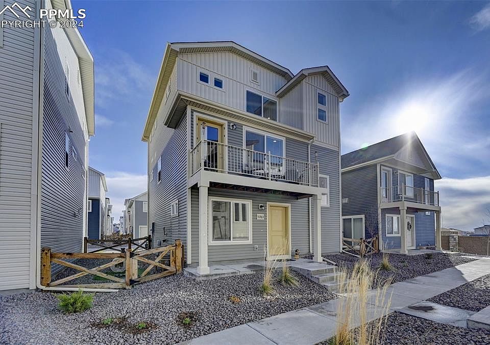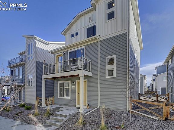 Walking into this beautiful three story home the main floor has a private family room that is currently being utilized as a bedroom. Walking up the stairs to the open space living area the living room flows seamlessly into the kitchen and walks out to the balcony with incredible views. The kitchen boasts a barstool height center island and stainless steel appliances. Bedrooms one and two are on the second floor with a full bath. The upper level has a large loft area with many possibilities from a children's playroom, office space, seating area, or many other options. The spacious master bedroom is the finishing touch on this stunning home with an ensuite bath featuring a stand alone walk in shower and walk-in closet. The Banning Lewis Ranch community has amenities galore, including neighborhood schools, over 75 acres of parks/trails/open space, tennis courts, basketball court, rock climbing parks, zip-lines, access to pools, splash pad, water park, and dog park. Recreation center houses a fitness center and also regularly hosts classes and events for all ages. In the summer months, catch a neighborhood concert, festival, food trucks, farmers market or enjoy other regular community events. More details to come.