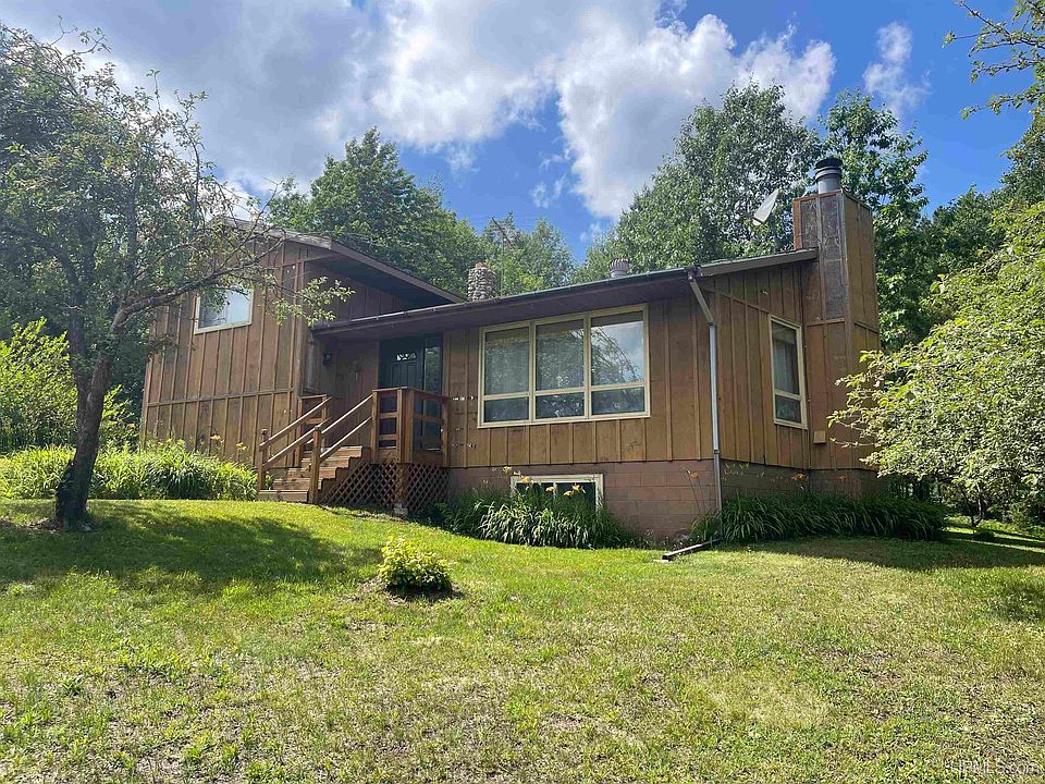 2 Bedroom, 2 bath home that sits on 5 acres in Kimball Township. Full bathroom and Laundry on the lower level. The main level you will find the kitchen with ample cabinets and countertop space, dining area, and living room with a wood burning fireplace. On the upper level you have 2 bedroom, and a full bath.