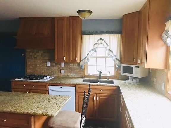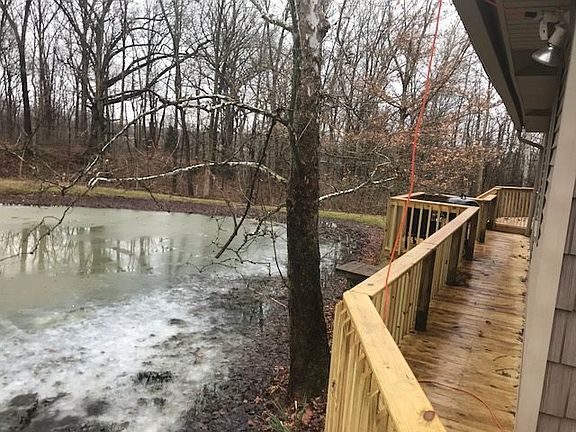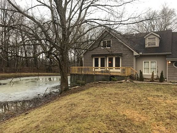 Conveniently located & lots of space inside & out! Attractive & well-maintained exterior of this home located on 1.38 acres close to the Vigo/Clay line. The blacktop drive leads you to a 3 car garage with an additional spacious workshop area. A new wrap around deck overlooking the water has room enough for a large grill & more! New beautiful, well-applianced kitchen will bring a smile to your face. Hickory cabinets, beautiful granite countertops, & a spacious island & all situated on a hardwood floor & with a view of the water. The high-end appliances include separate large refrigerator & freezer, double ovens, a cook top & an ice maker. The first floor includes a dining room, two bedrooms & two full baths. Upstairs are 3 bedrooms & 1.5 baths. The third bedroom could also function well as a family room or recreation area. (Room sizes are approximate.)