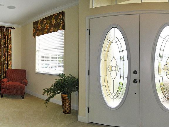 The Williamsburg s covered portico opens to a welcoming tiled entryway. The heart of the home is the eat-in kitchen, situated to the right of the entry. Enjoy a full view of the spacious great room over a comfortable breakfast bar. Sliders in the great room reveal a patio that is perfect for outdoor living and entertaining. The three-bedroom, two-bath split floor plan features a master suite with his and her closets and a private bath. The optional den or fourth bedroom can be a great idea to add another private room. The linen closet, a pantry kitchen and a two car garage provide additional storage.