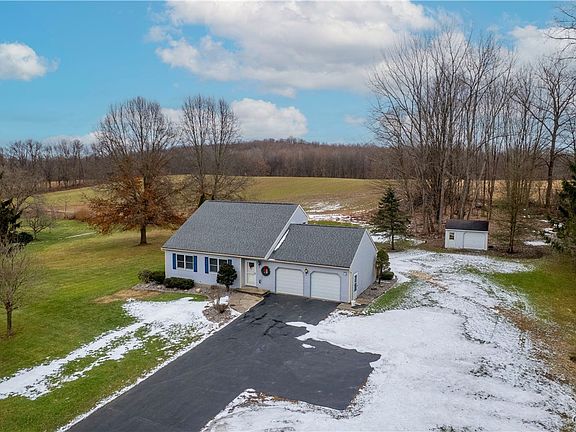 Beautifully maintained home on nearly an acre near the popular Village of Elbridge—famous for its rolling drumlins and stunning vistas. Enjoy a scenic 15-minute commute to Syracuse or Auburn and quick access to Skaneateles Village/Lake – one of Central New York's most popular destinations. Located on a quiet road minutes from major highways, this home features vaulted ceilings, a first-floor primary bedroom, a luxurious bath (new shower, sink, flooring, fixtures, and fresh paint), a second full bath upstairs, freshly painted family room with new carpet, gleaming ¾" hardwood floors, and a modern kitchen with new backsplash, fixtures, and upgraded lighting. Enjoy a paved driveway with a turnaround, a spacious deck, a 10x16 electrified shed, professional landscaping, and low utilities (natural gas!) averaging only $200 per month. Award-winning Jordan-Elbridge School District offers free meals, accelerated courses, arts, athletics, the 2025 NYSFBC championship marching band, and U.S. News & World Report recognition—plus a full-day Pre-K program for 3 and 4-year-olds that includes transportation. Don't miss this perfect blend of country charm, community spirit, and a short urban commute - schedule your private showing today!