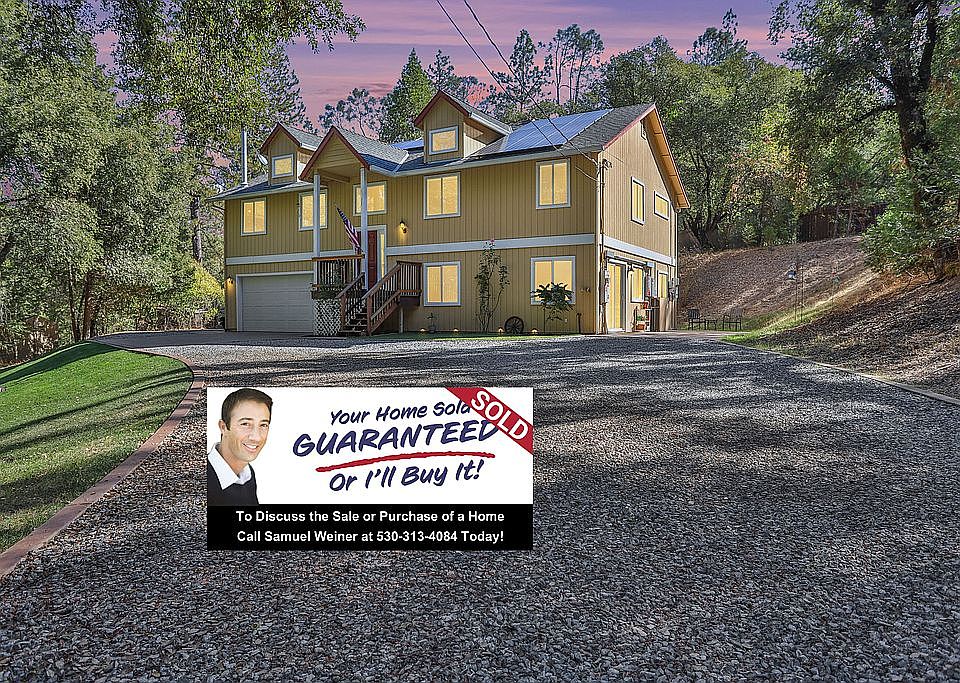 "Buy This Home and I Will Sell Yours for Free or Buy Your Home! Your Choice."* Two homes in one! That's right! This home has the perfect configuration for a large 4 bed 3 bath home OR a 3 Bed 2 bath home with a 1 bed 1 bath apartment. Apartment has its own parking, laundry room and its own entrance. Perfect for income rental of $1400 a month or Airbnb or mother in-law. Main home has gorgeous kitchen with ss appliances, granite counters wood floors, and beautiful wooden cabinetry. Open family room features a wood burning stove and lots of window to let the outside in. Master bathroom has double sinks, soaking tub, and walk in shower. Beautiful wooden deck, outdoor spa and plenty of outdoor space for gardening and enjoying cool evenings. Comprehensive solar and Tesla battery system to operate ON or OFF Grid, large enough to power both homes all year & EV cars. Solar mostly owned with PPA plan. You will not be affected by power outages. Don't forget to preview the gardens and chicken coop. Inspection report are available. Your new home is in amazing condition. I am so confident you will love this home for years to come that you are not happy with this home within 24 months of the date you purchase, I'll buy it back or I will re-sell it for free, your choice**. **To discuss and get details of my Buyer Satisfaction Guarantee in writing, call Samuel Weiner at 530-313-4085.