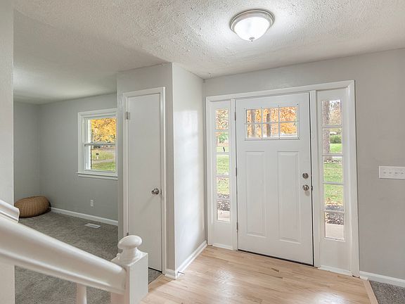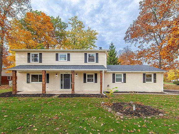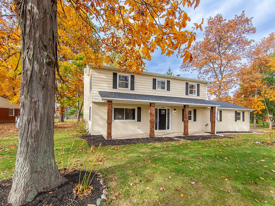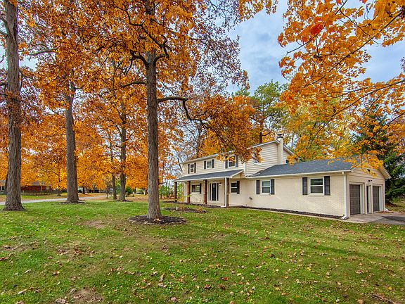 Remodeled 4 bedroom family home in Wooded Ridge (Pendleton Schools). Main level features open concept family room (or dining room) with fireplace, kitchen with peninsula bar/island, black granite countertops, farmhouse sink and recessed pantry, living room and office. Upstairs are 4 spacious bedrooms (all with original refurbished hardwood floors), owners suite with stand-up shower. Downstairs is a huge finished basement with wood panel walls, and cozy fireplace. Screened porch overlooking the nearly half acre lot. This home has new roof, upstairs hvac and newer windows.