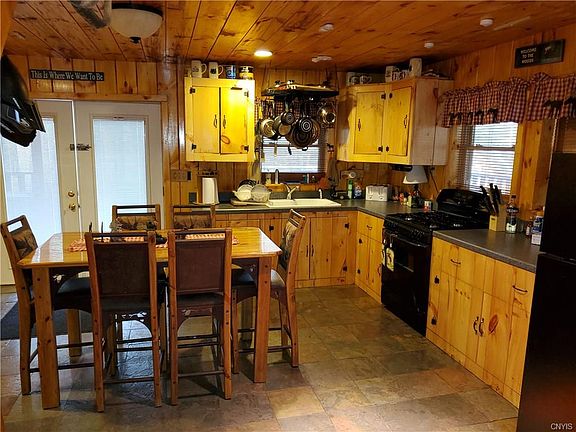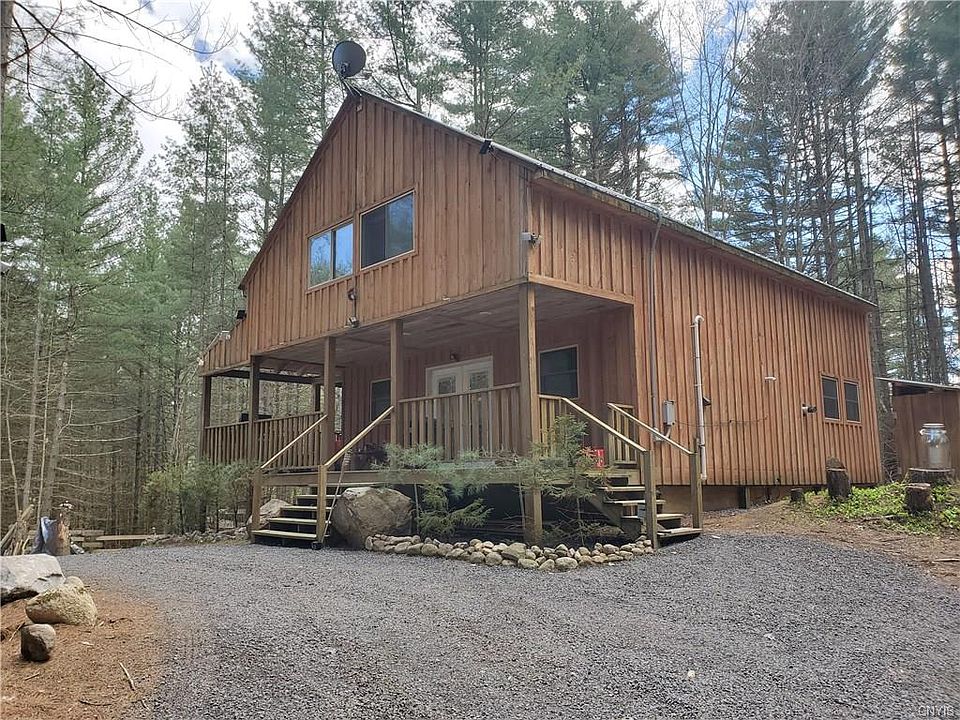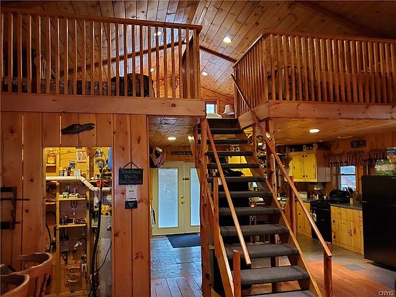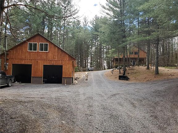 This choice piece of real estate has access to the Otter Creek Trail System & over 1000 acres of State Land & within five minutes walk+- to Otter Creek. ATV & Snowmobiles are permitted up & down the road. Off the grid; this custom built cabin of mostly timber found on the site- is Solar Self-Sustaining. See attached Fact Sheet. Considerable detail has been made to create a charming Adirondack Style Gem. Loft bedroom could be divided into 2 good sized bedrooms. Flooring in bath is of raspberry marble, carpeted bedroom & cherry & tile on the 1st. Nearly all contents are included-even 2 snowmobiles and 1 ATV. Garage offers high ceiling, is insulated, and heated. Additional partially finished area is on the second level. Across road is RV camping spot. B/U generators included.