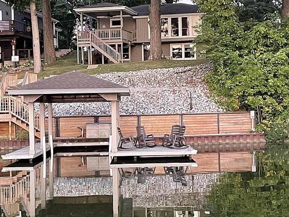 Immaculate and well-maintained 3 bedroom, 2 bath, walk out lower-level lakefront home for sale on highly desirable Stahl Road. This updated home is absolutely move-in ready. The peaceful Big Monon allows easy access to Lake Shafer while providing a safe place to swim and fish in the no-wake bay. A 2.5 car detached garage with attached 20' X 22' workshop/water toy storage is an added plus. Home has large windows providing a lovely view of the water. Enjoy the patio, yard, and covered deck under the beautiful shade trees. Fantastic views from the mid-bank lot. New steps and new steel/wood retaining wall by the permanent covered boat lift and fishing deck. Numerous updates include: Permanent covered boat lift with fishing deck, private well, 200 amp electric service and panel, double pane replacement windows throughout, tiled baths with new fixtures, all new kitchen appliances, new recessed ceiling lights and under cabinet lighting in kitchen, new granite counters in kitchen and baths, gutters with guards, maintenance free soffits on house, garage, and boat lift, freshly painted interior, new LVT in lower level. Other features include a gas fireplace with flanking built in cabinets, economical hot water heat, central air conditioning, brick floor in foyer. Washer/dryer and 2nd refrigerator to remain in large utility room, along with water softener and whole house water purifier. Lots of storage with many closets. Most furniture stays. Other features a gas fireplace with flanking, built-in cabinets, economical hot water heat, central air conditioning, brick floor in foyer. The washer/dryer and 2nd refrigerator to remain in large utility room, along with water softener and whole house water purifier. Lots of storage with many closets. Most furniture stays. There is an easement for a community well house on the property where the garage is located. The garage is directly across the street from the house.