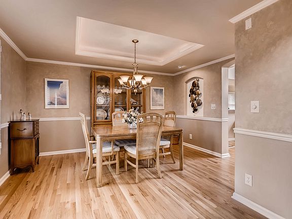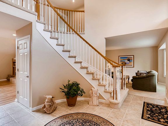 Best price in exclusive Hills East neighborhood. Wonderful light from large windows fills this home with a dramatic entry featuring a curved staircase. The two-story den has a gas fireplace with several art niches. A luxurious master suite provides a relaxing 5-piece bathroom with large jetted Jacuzzi tub, frameless shower enclosure, elevated vanity countertops and large sky-light. Formal living and dining, and main floor study. Newer hardwood floors, plantation shutters and new wood blinds. A remodeled kitchen includes an island, breakfast bar, granite countertops and stainless appliances. The breakfast nook is surrounded by large windows and opens to a secluded redwood deck with pergola covering. A finished garden-level basement includes a wet bar, pool table, hobby room and extra bedroom. Mature landscaping with over 20 trees. Newer roof, widows and insulation. Great DTC location, walk to Cottonwood Elementary, several parks, Cherry Creek State Park, and the CC Vista community pool and tennis courts.