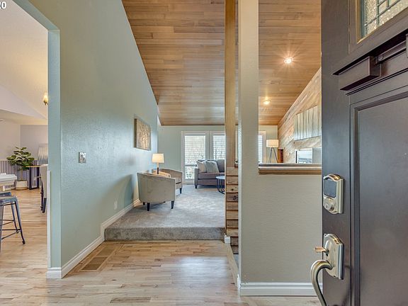 Alluring architecture, open floor plan and great use of square footage. Vaulted ceilings and an expansive bank of windows along back of the house on both levels. Stunning views from all over the house. The large open kitchen has a lot of cupboard space, Corian counter tops. Great space for the family on the lower level with bedrooms, family room and bonus pool room. Enjoy the outdoor space with the decks on the back of the house and terraced yard. Unfinished basement with workshop.