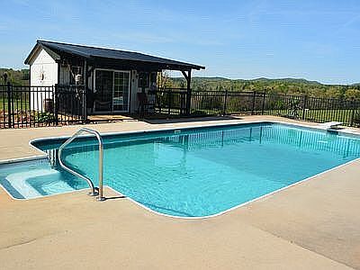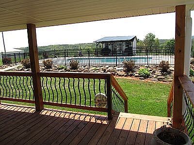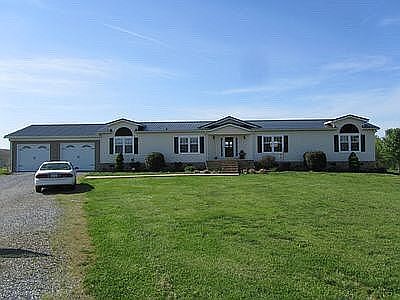 2002 on frame modular home. 3 bdrms 2 full baths, with office and utility room. Hardwood in living, dining, hall. Carpet in bdrms and office. Tile in kitchen and baths. Baths redone in 2019. Master bath has large walk-in shower. Ceiling fans in all rooms. 12 x 40 covered deck. 18 x 36 Inground pool with pool house. 60 x 60 barn with power and water. 60 x 40 insulated commercial metal building with power. 4 smaller out buildings, 2 with power. 2 wells and septic systems. 1900 feet river footage. 5 natural springs. No flood concerns as all on hill. 43 acres in hay or pasture. 320 to 400 4x5 bales a year.