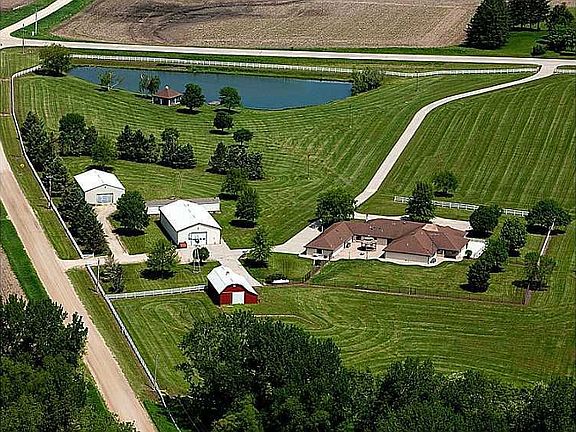 The possibilities are endless. This home offers over 6800 square feet of living space just waiting for your personal touches. The kitchen has been remodeled in to a Master Chef's dream. All appliances are Viking and there are three wall ovens, 48" gas stove, 22" frig and 19" freezer as well as a separate ice maker by the prep sink. The pantry is huge and the laundry room has more room than you can imagine and you can take the elevator down to the basement from here. The living room and formal dining room offer space for any size furniture too. The attached four car garage is heated and has a separate stairway to the basement. The horse stable will house four horses and then the 80x40 outbuilding with a loft can be used for most anything. The 18.86 acres of manicured lawn is fenced for horses or could be share cropped too. The pond is stocked with fish and the gazebo is great for relaxing. There is a wind turbine too.