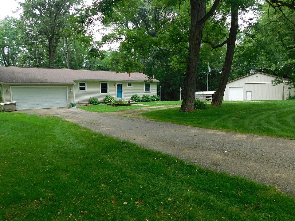 Ranch Walkout 3 bedrooms 1 Bath, Living Room with Pellet stove w/ newer addition 4 Season Sunroom with Sliders to deck. Basement with Wood Burning stove and French Doors to Cement patio and sidewalk to deck. Pole barn 40x48 would make a great Workshop and for the Hobbyist, 24x48 of the Pole Barn is heated, running water, Concrete Floors with drains and 220-amp service. County Living and close to Two Lakes and within 5 Miles to Paw Paw Restautant's and Shopping. Paw Paw Schools.