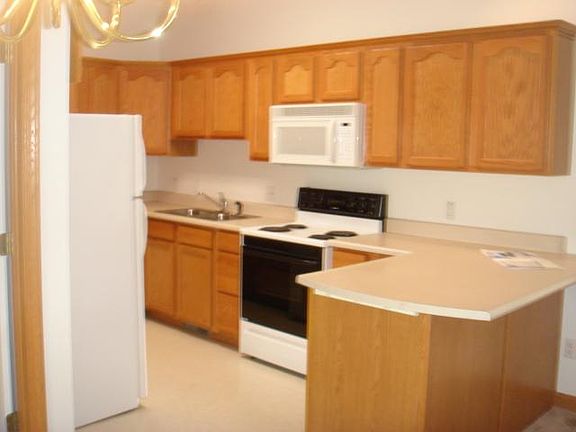 Spacious maintenance free Condominium! This 2 bedroom 1 bath condominium has a spacious oak kitchen with vaulted ceilings throughout the living room, kitchen, and dining room. Enjoy the attached garage that enters to a mudroom with a washer dryer included. There is plenty of closet and storage space! Apply now! Security Deposit, First and Last Month's rent due at lease signing. Tenant pays all utilities.