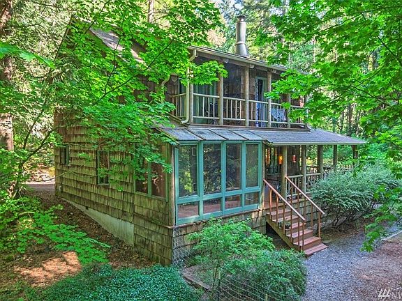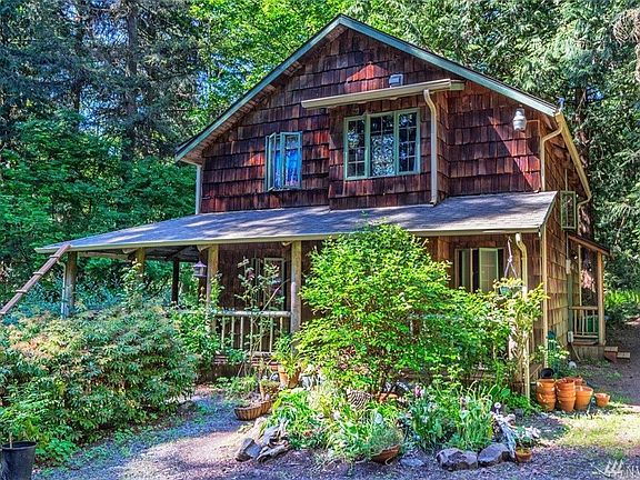 True NW charm & privacy exude from this cool cottage. Softwood floors, wood paneling, vaulted ceiling w/ exposed beams & local river rock fireplace w/ wood burning insert create natural warmth & ambiance. 1st floor wrap around covered porch & upper level covered porch for proper NW coffee sipping. 3.75 wooded acres close to schools, casino, hwy access, just minutes to ferries & shopping. A rare gem awaits you here.